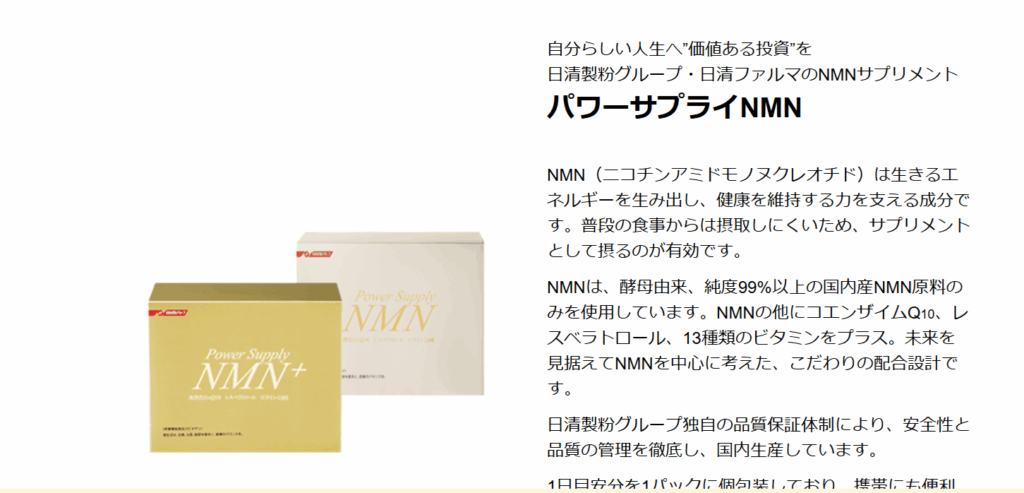 食品メーカーとして信頼のある日清ファルマが提供するNMNサプリ。